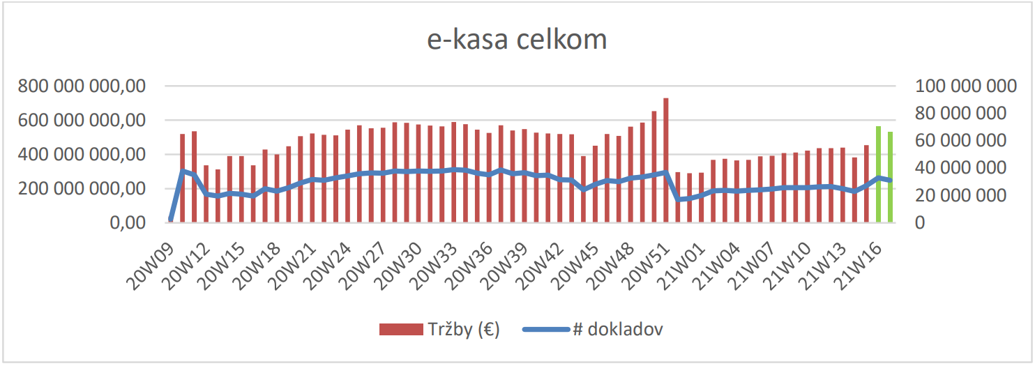 "Protiepidemické opatrenia s cieľom obmedziť šírenie koronavírusu sa odrazili aj na tržbách. Potvrdzujú to údaje zo systému finančnej správy e-kasa. Tržby kontinuálne klesali od augusta minulého roka. Najnižšie tržby zaznamenal systém e-kasa v januári tohto roka, keď dosiahli len 1,4 miliardy eur. Výrazný výpadok utrpeli kaderníctva, fitness centrá a reštaurácie.