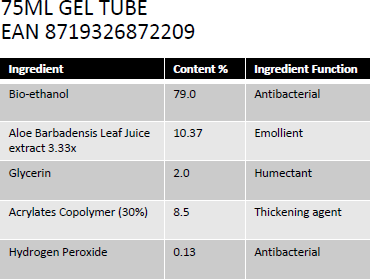 Zloženie výrobku bolo testované, aby zabezpečilo odporúčanú mikrobiocidnú aktivitu na úrovni 79% podľa WHO odporúčaní, eliminujúc 99%