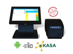 Certifiková zostava eKasa : Ponúkaná zostava obsahuje 10" dotykový POS elio 100 , tlačiareň bločkov na 80mm papier s nožnicami s eBox alebo na 58mm tlačiareň a základná verzia pokladničného sofware pre operačný systém Android.