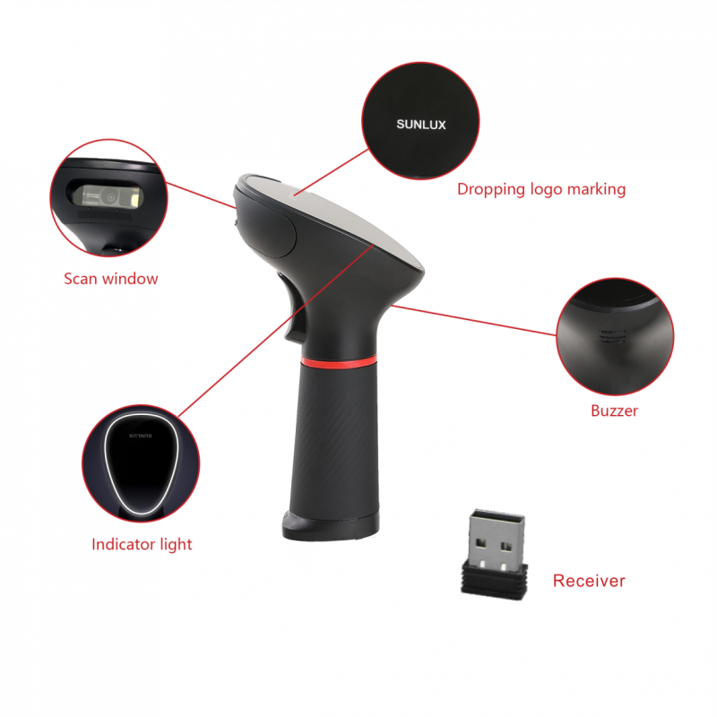 Bezdrôtový 2D snímač čiarových kódov elio XL-9600. Snímač umožňuje snímanie všetkých hlavných 1D a 2D čiarových kódov.