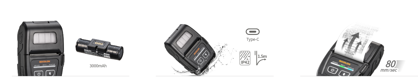 Mobilná a cenovo výhodná 2-palcová (58 mm) mobilná tlačiareň SPP-C200, navrhnutá s osvedčenou technológiou tlače účteniek spoločnosti BIXOLON, podporuje priemer kotúča s médiom až 40 mm. SPP-C200 ponúka najväčšiu kapacitu jednočlánkovej batérie 3000 mAh a umožňuje dlhodobú prevádzku terénnym pracovníkom v rôznych odvetviach. Ideálne pre potvrdenie o doručení, platbu mobilom a ďalšie. Možnosť pripojenia k iOS , Android a Windows.