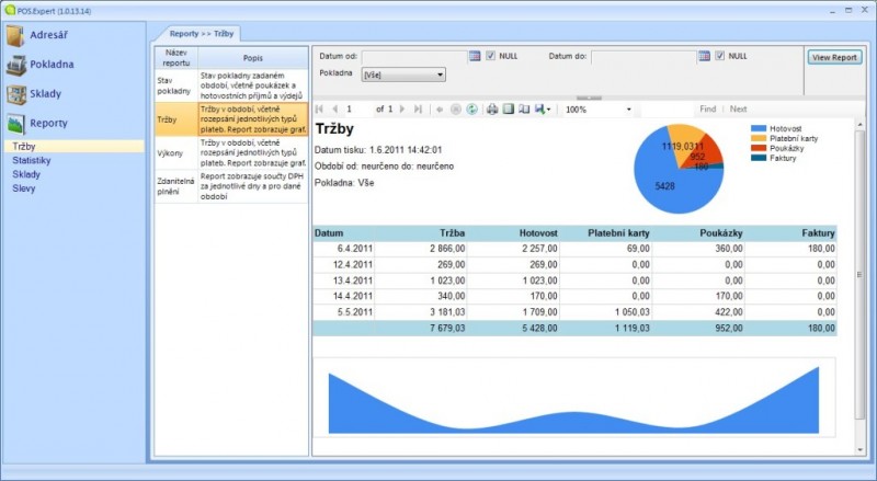 Program POS Expert Vám navyše dodá veľa výsledkov a štatistík formou tlačových zostáv a grafov. Máte tak kedykoľvek prehľad o tržbách, ziskoch, obrátkovosti skladových zásob, výkonnosti zamestnancov, útratovosti jednotlivých zákazníkov a pod.