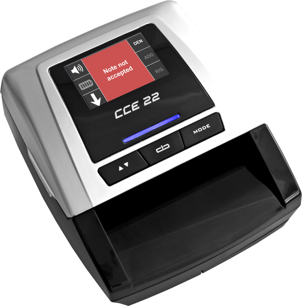 CCE 22 kombinuje osvedčené vlastnosti modelov CCE 10 a CCE 20 a ponúka ešte všestrannejšiu a užívateľsky prívetivejšiu detekciu falzifikátov. Vďaka vysoko presným testovacím metódam zariadenie spoľahlivo detekuje podozrivé bankovky a zobrazuje výsledok v rôznych režimoch zobrazenia.