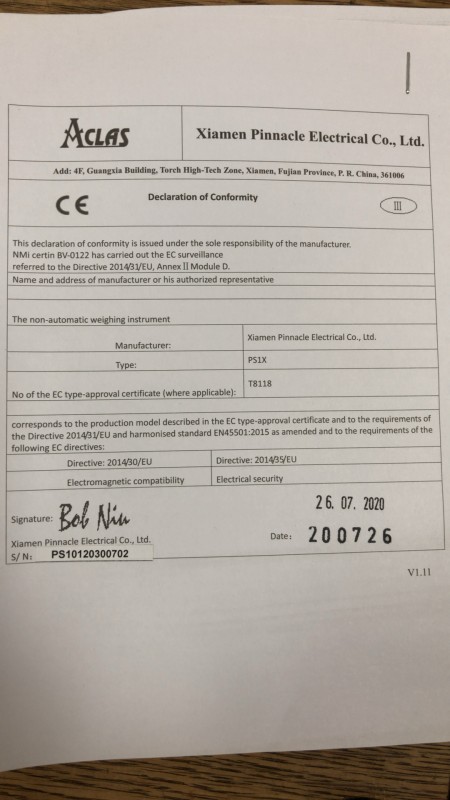 | Certifikácia: | pre obchodné vážení - ES overenie |